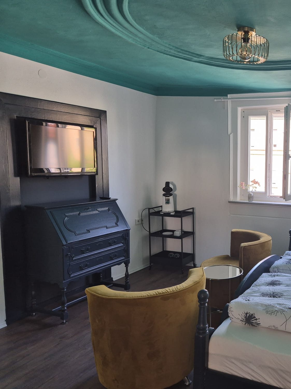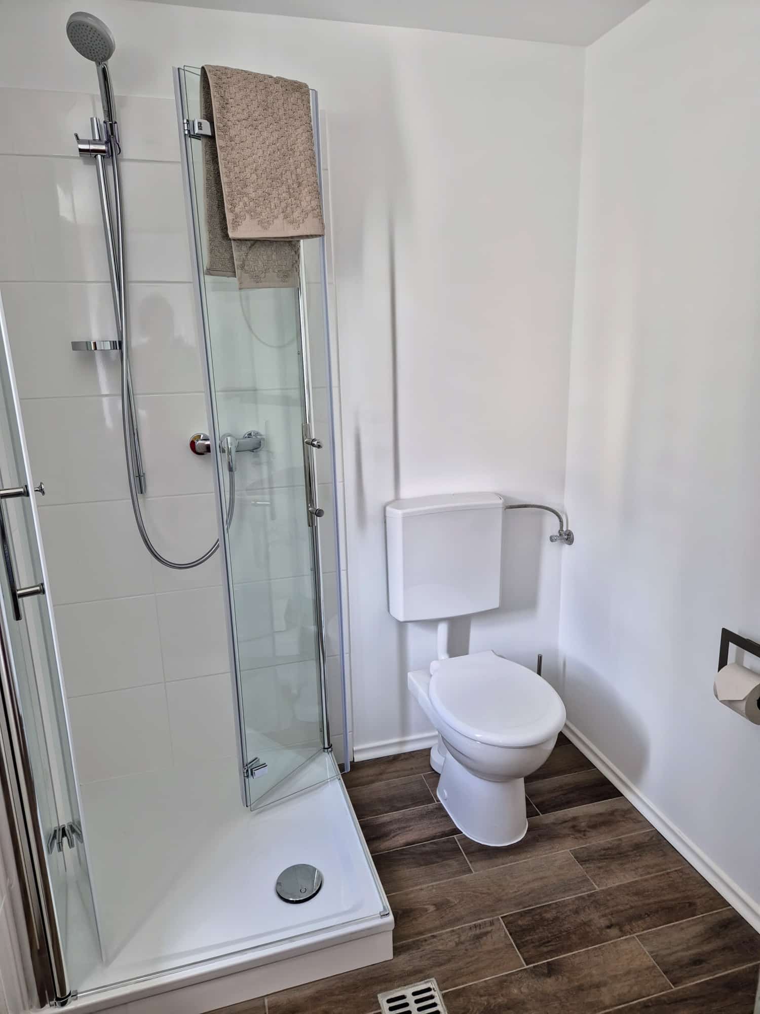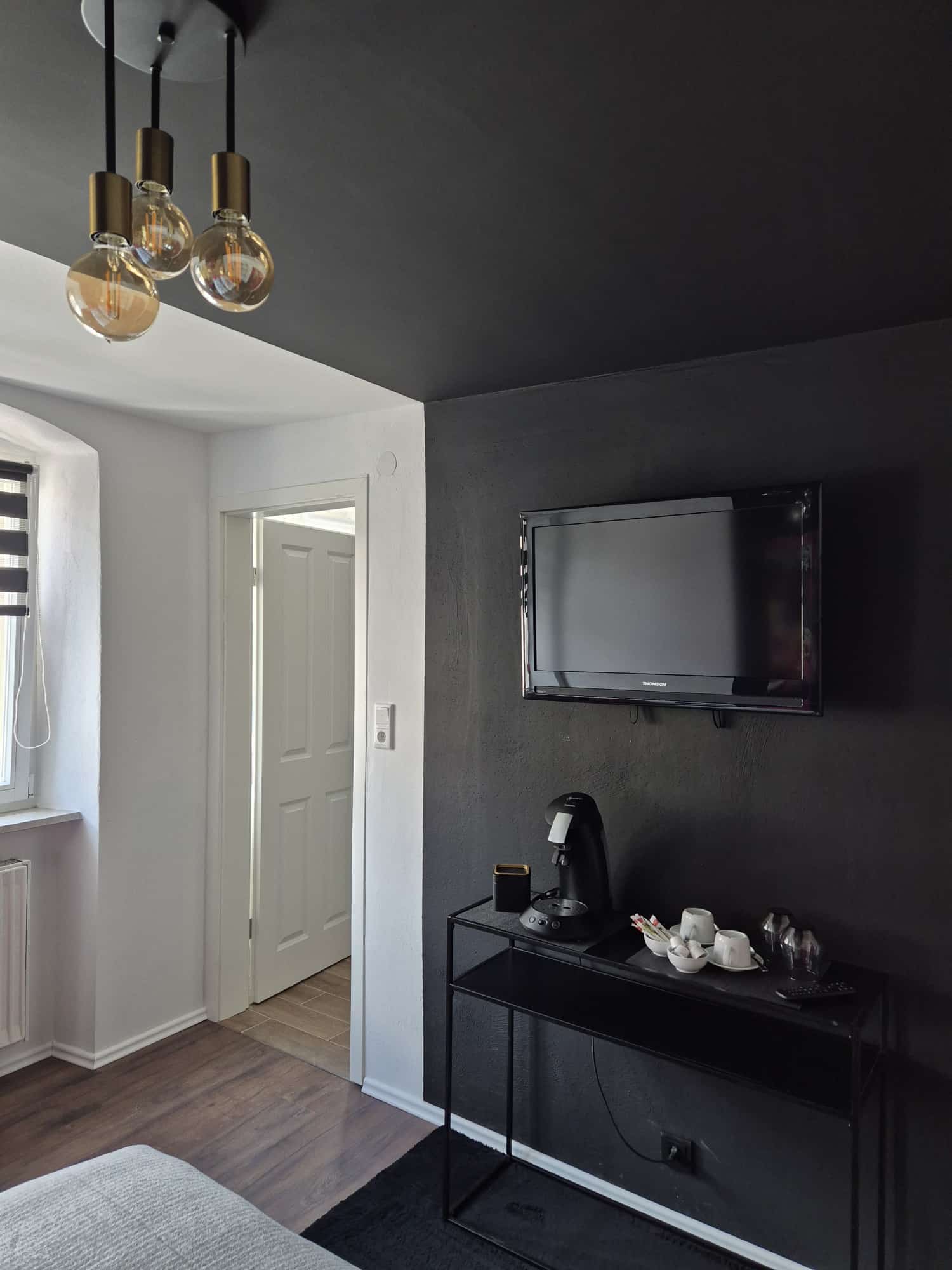Unser Zimmer 1 bietet euch auf 20 qm ein Kingsize-Bett, ein modernes Duschbad, eine Kaffeemaschine, TV, WLAN und auf Wunsch ein Zustellbett (gegen Aufpreis). Auch freundliche Hunde sind willkommen.