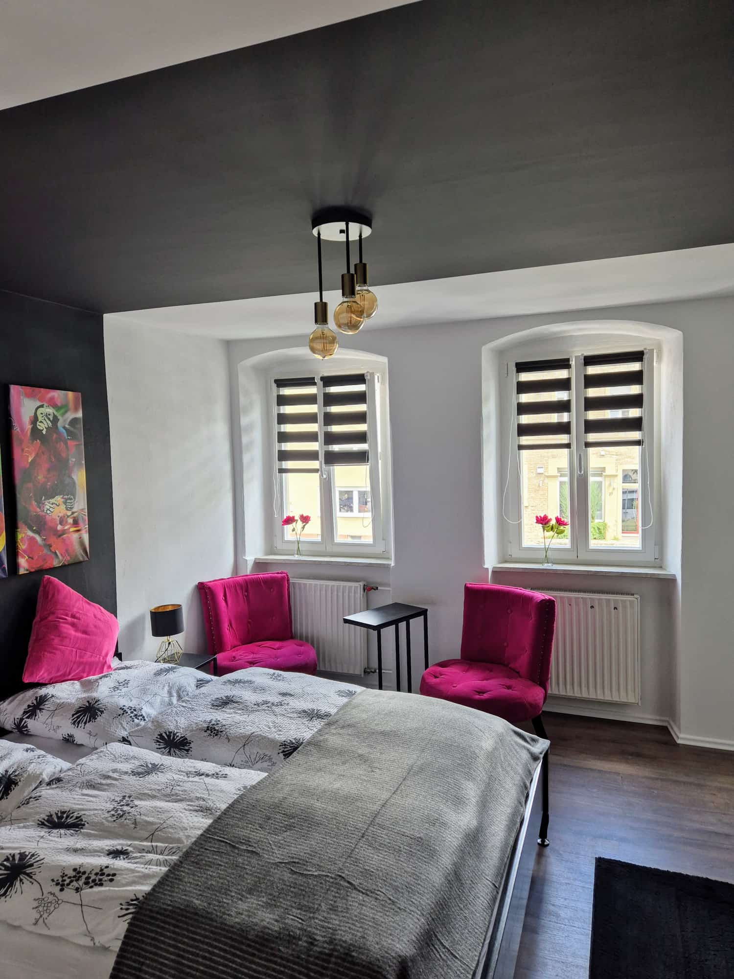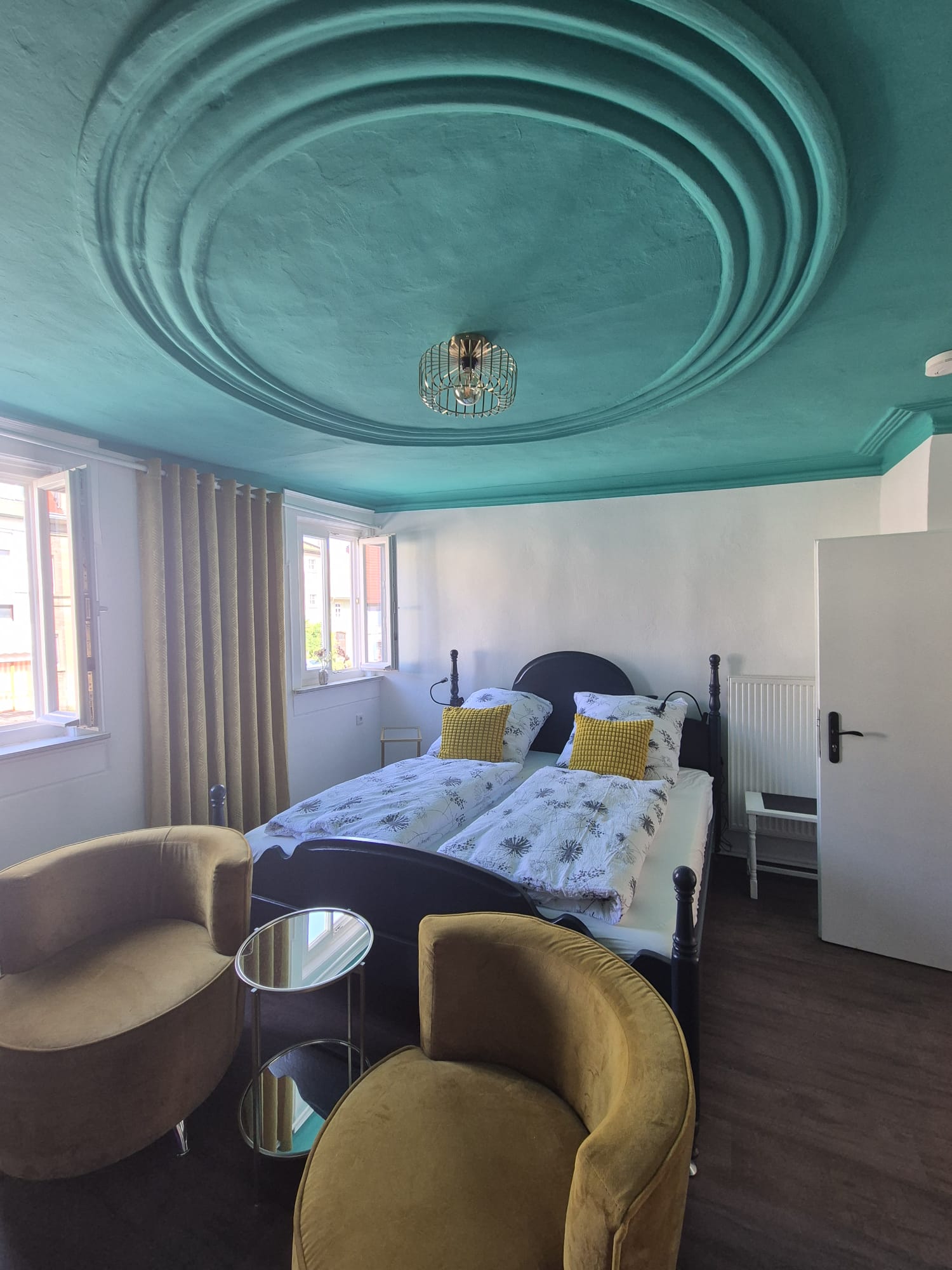 Unser Zimmer 2 bietet euch auf 14 qm ein Queensize-Bett, ein modernes Duschbad, eine Kaffeemaschine, TV, und WLAN. Haustiere sind nicht erlaubt.